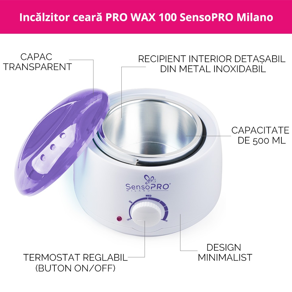 Decantor Ceara Traditionala - Incalzitor Ceara / Parafina Pro Wax 100 SensoPRO Milano pentru ceara si parafina Pro-Wax 100, cu o capacitate de 500 ml, este solutia perfecta pentru un epilat rapid si usor. Se poate utiliza si pentru obtinerea beneficiilor tratamentului cu parafina. Topeste toate tipurile de ceara traditionala, dispune de recipient interior detasabil din metal si termostat reglabil. Pachetul contine: 1buc x Incalzitor ceara electric 1buc x Manual de utilizare Specificatii: Model: SP-PROWAX 100 Capacitate: 500ml Tensiune alimentare: 220-240V 50Hz Material: ABS & Aluminiu Culoare: Alb Respectati intotdeauna modul de utilizare. Mod de utilizare: Epilare cu ceara: 1. Asaza incalzitorul pe o suprafata dreapta si rezistenta la temperatura; 2. Asigura-te ca rotita incalzitorului este pe pozitia OFF, apoi conecteaza incalzitorul la priza; 3. Toarna cantitatea de ceara dorita in recipientul incalzitorului si pune capacul; 4. Seteaza incalzitorul la temperatura maxima cu ajutorul rotitei si încalzeste ceara pana devine complet lichida, apoi pastreaz-o constant la o temperatura medie. Amesteca din cand in cand pentru a verifica soliditatea, ceara este gata de aplicare cand devine cremoasa ( supravegheati constant ceara in momentul incalzirii). 5. Asigura-te ca temperatura cerii este confortabila pentru pielea ta. Poti face un test pe o mica portiune a pielii pentru a evita arsurile. 6. Incepe prin curatarea pielii cu Lotiune inainte de Epilare SensoPRO Milano . Asigura-te ca pielea este complet uscata inainte de aplicarea cerii. 7. Foloseste o spatula pentru a aplica ceara in directia cresterii firelor de par, asteapta cateva secunde pentru a se întari ceara si apoi trage rapid in sens invers cresterii firelor de par. 8. Aplica Ulei dupa Epilare pentru a indeparta reziduurile de ceara si pentru a reduce roseata si iritatiile pielii. Evita expunerea la soare sau la bai fierbinti timp de cateva ore dupa epilare pentru a preveni iritatiile suplimentare. 9. Dupa utilizare, deconecteaza incalzitorul de la priza si curata-l pentru a indeparta resturile de ceara cazute pe acesta. Tratament cu parafina: 1. Asaza încalzitorul pe o suprafata dreapta si rezistenta la temperatura; 2. Asigura-te ca rotita incalzitorului este pe pozitia OFF, apoi conecteaza incalzitorul la priza. 3. Portioneaza parafina si asaza cantitatea dorita în recipientul încalzitorului, apoi pune capacul. 4. Seteaza incalzitorul la temperatura maxima cu ajutorul rotitei si incalzeste parafina pana cand aceasta devine complet lichida, apoi seteaza încalzitorul la temperatura medie si astepta ca temperatura parafinei sa fie confortabila pentru pielea ta. Poti face un test pe o mica portiune a pielii pentru a evita arsurile ( supravegheati constant ceara in momentul incalzirii). 5. Inainte de aplicarea parafinei trebuie sa: dezinfectezi zona dorita, sa masezi usor cu o crema exfolianta si sa clatesti cu apa calduta, apoi aplica un strat gros de crema hidratanta si maseaza usor. 6. Cand parafina ajunge la temperatura dorita, aplica pe zona dorita cu o pensula/spatula speciala pentru parafina. 7. Dupa acoperirea completa cu parafina, introdu manile/picioarele mai intai intr-o manusa/soseta de unica folosinta, apoi in manusile/sosetele din bumbac pentru parafina. 8. Asteapta 30min. si îndeparteaza parafina. 9. La final aplica un strat de crema hranitoare și maseaza usor. 10. Curatarea incalzitorului se face cu ajutorul unui servetel, cat timp parafina este înca lichida. Ceara si parafina se folosesc exclusiv pentru uz extern. A nu se aplica pe piele sensibila, afectata de leziuni sau pe zone sensibile. A nu se lasa la indemana copiilor . A se evita supraincalzirea. Se recomanda incalzirea precauta. ATENTIE : foarte fierbinte, poate cauza arsuri! Conditii de pastrare: Nu lasati produsul (ceara sau parafina) deschis si nefolosit pentru perioade mari de timp. A se pastra in spatii reci, uscate si aerisite, ferite de lumina directa a soarelui, a umezelii , a materialelor cu potential agresiv, eventuale lovituri, zgarieturi sau deformari. Se beneficiaza de garantia legala de conformitate asa cum aceasta este reglementata de dispozitiile Legii nr. 296/2004 privind Codul Consumului, cu modificarile si completarile ulterioare coroborate cu dispozitiile OUG nr. 140/2021 privind vanzarea produselor si garantiile asociate acestora, cu modificarile si completarile ulterioare.