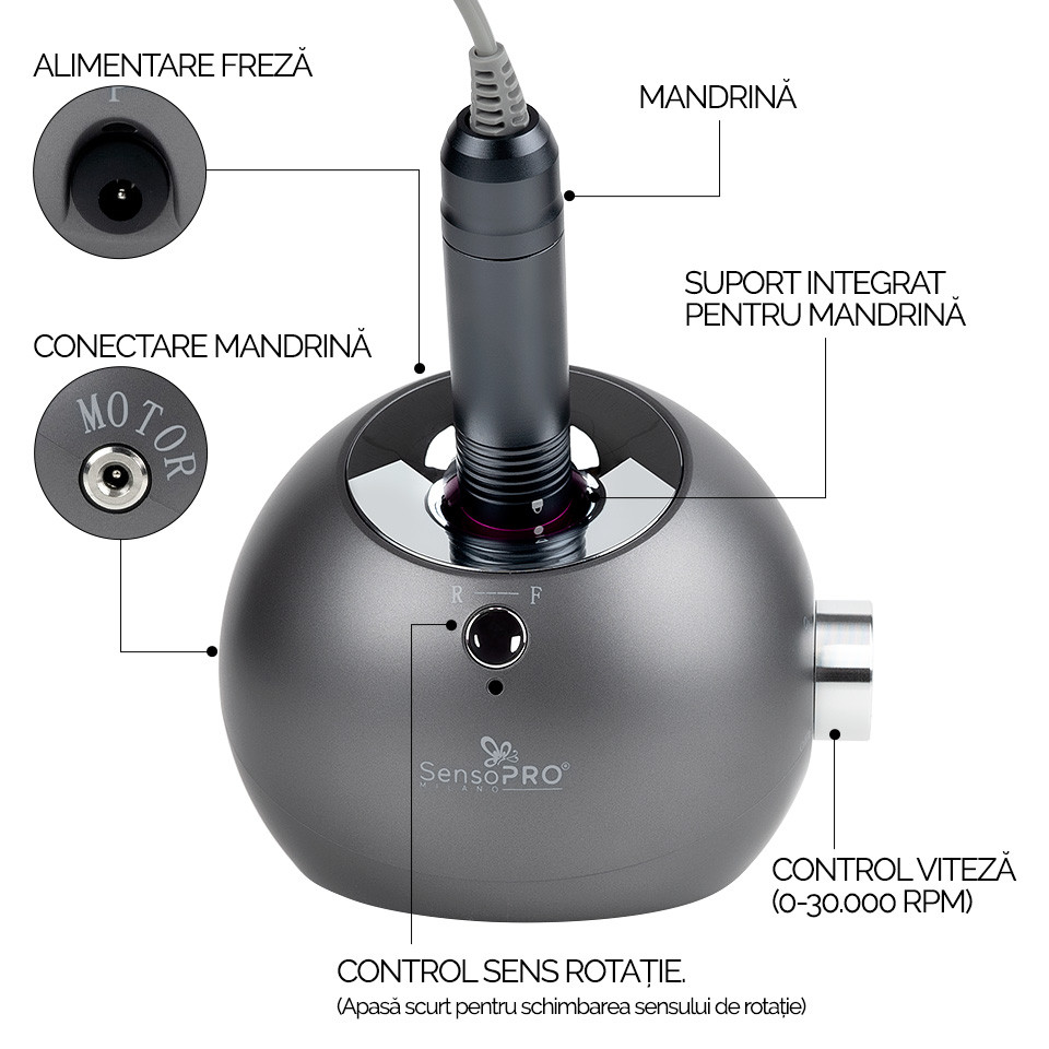 Freza Unghii Exclusive Nails SensoPRO Milano, 30.000 RPM, Grey are un design minimalist si eficient. Silentioasa, cu dimensiuni reduse, utilizare facila Exclusive Nails a fost proiectata pentru confort si performanta. Viteza este variabila, de la 0-30.000 RPM si se regleaza usor cu ajutorul rotitei si a gradatiilor de pe unitatea de baza. Suportul integrat pentru mandrina, butonul de schimbare a sensului de rotatie FWD / REV, conectarea mandrinei cu freza, sunt intuitive si ofera o experienta unica, confortabila. Freza este recomandata pentru pilire, gravare, slefuire, polizare, ascutire, lustruire si definire a patului unghial, micsorand timpul de lucru si marind eficienta. Unitatea centrala are un design modern si este creata din materiale de calitate. Dispune de sistem de control al vitezei, protectie la suprasarcina si oprire de siguranta. Dispozitivul ajunge la o viteza de pana la 30.000 rotatii pe minut si comutator avansat de directie (doua sensuri de rotatie), fiind adecvata atat dreptacilor, cat si stangacilor. Mandrina sa nu vibreaza in timpul utilizarii, este robusta, are greutate optima si varful subtire ce favorizeaza finetea si precizia operarii. Capul de slefuit poate fi inlocuit fara efort. Mod de utilizare: Conectati freza la priza cu ajutorul cablului de alimentare. Mandrina se conecteaza in partea stanga a frezei. Rotita pentru setarea vitezei are si rol de buton ON/OFF. Invartiti in partea dreapta pentru a pornii freza (pana se aude un click). Alegeti sensul de rotatie Forward sau Reverse, cu o simpla apasare a butonului R-F. Setarea vitezei se face cu ajutorul rotitei. Specificatii tehnice: Viteza: 30.000 RPM Putere: 18 W Tensiune alimentare: 220-240 V 50Hz Culoare: Grey Model: SP-3500EN Material: ABS + Metal Dimensiune: 10.5 x 11 x 9 cm Greutate: 362 g Sens rotatie FWD / REV Pachetul contine: 1 buc x Pila electrica unghii 1 buc x Mandrina 6 buc x Varfuri de polizare 6 buc x Capete de slefuit 1 buc x Manual de utilizare Se beneficiaza de garantia legala de conformitate asa cum aceasta este reglementata de dispozitiile Legii nr. 296/2004 privind Codul Consumului, cu modificarile si completarile ulterioare coroborate cu dispozitiile OUG nr. 140/2021 privind vanzarea produselor si garantiile asociate acestora, cu modificarile si completarile ulterioare.
