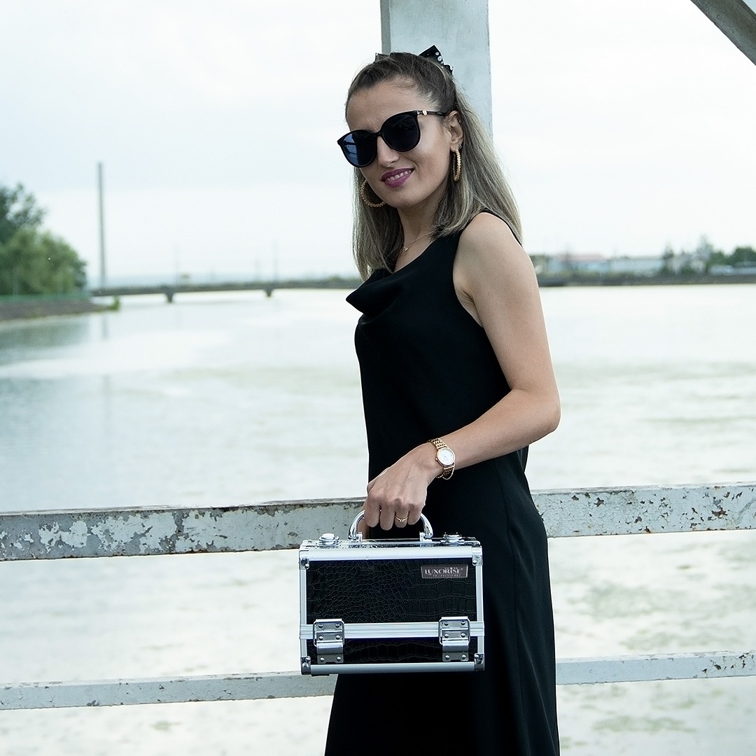 Geanta Makeup din Aluminiu cu Oglinda, Black Pattern, LUXORISE este perfecta pentru rutina ta zilnica. Detine un spatiu excelent de transport si depozitare a produselor cosmetice, de manichiura si hairstyling. Designul englezesc ii confera un aspect classy-chic de invidiat, iar captuseala interioara este foarte usor de curatat. Mai mult, sistemul de organizare a produselor in interiorul gentii este extrem de practic. Acesta promite sa se ridice la standardele tale de zi cu zi. Cele doua compartimente triple laterale te vor ajuta sa iti depozitezi in mod util toate cosmeticele necesare. In plus, compartimentul adanc de la baza gentii ofera posibilitatea de depozitare a obiectelor mai voluminoase (sticlute, borcanase, lampa UV etc.). Lucrezi in domeniul beauty si ai nevoie sa iti organizezi toate produsele si ustensilele folosite, fara batai de cap? Nimic mai simplu! Fie ca esti cosmeticiana, make-up artist, hair stylist sau manichiurista, aceasta geanta se va dovedi a fi perfecta pentru tine! Esti pasionata de machiaj, cosmetica si ai o colectie impresionanta de produse care nu isi mai gasesc locul prin port-farduri sau gentute neincapatoare? Geanta Makeup din Aluminiu cu Oglinda, Black Pattern, LUXORISE este exact ceea ce îţi trebuie! Adauga o nota de profesionalism organizarii produselor tale cosmetice cu Geanta Makeup din Aluminiu cu Oglinda, Black Pattern, LUXORISE ! Dimensiuni exterioare: 250 x 170 x 170 mm Dimensiuni interioare: 60 x 55 x 43 cm
