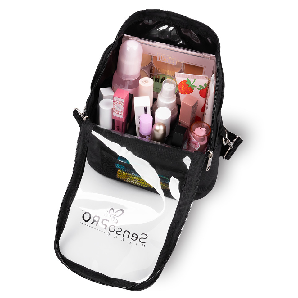 Geanta Produse Cosmetice SensoPRO Milano, Black Travel Bag are un design exceptional si este potrivit pentru depozitarea si transportul produselor cosmetice. Cu un design foarte practic, aceasta geanta pentru produse cosmetice este usoara si compartimentarea este ajustabila in functie de produse. Este potrivita pentru o larga varietate de produse, inclusiv truse de machiaj, sticlute, borcanase si pensule. Alege Geanta Produse Cosmetice SensoPRO Milano, Black Travel Bag pentru a-ti organiza si transporta colectia de beauty! *Pozele cu produsele in geanta au caracter informativ si se achizitioneaza separat.