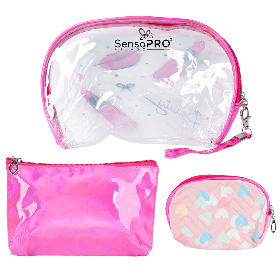 Portfard Cosmetice SensoPRO Milano - Holiday Charm, set 3 buc este perfect pentru calatorii. Portfardurile sunt un accesoriu versatil, extrem de util atat pentru vacante cat si pentru transportul si depozitarea zilnica a produselor cosmetice. Portfardurile sunt dotate cu un fermoar metalic foarte rezistent. Alege in siguranta colectia de beauty!