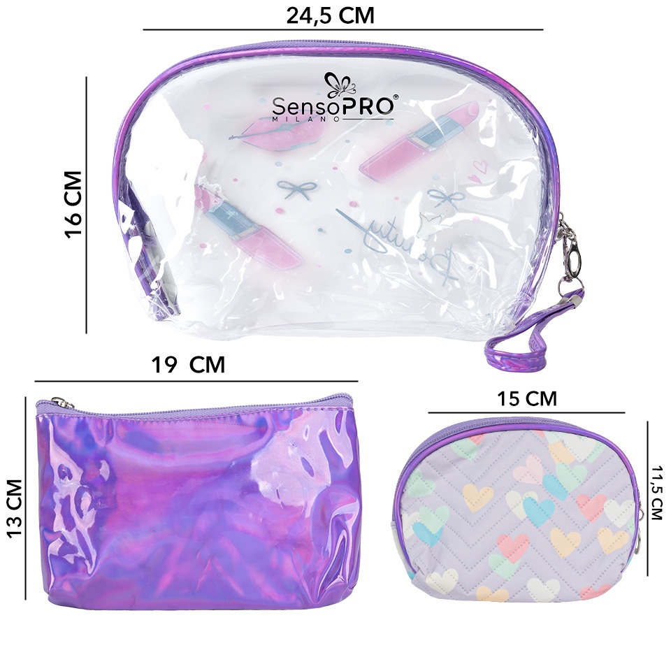 Portfard Cosmetice SensoPRO Milano - Holiday Diva, set 3 buc este perfect pentru calatorii. Portfardurile sunt un accesoriu versatil, extrem de util atat pentru vacante cat si pentru transportul si depozitarea zilnica a produselor cosmetice. Portfardurile sunt dotate cu un fermoar metalic foarte rezistent. Alege in siguranta colectia de beauty!