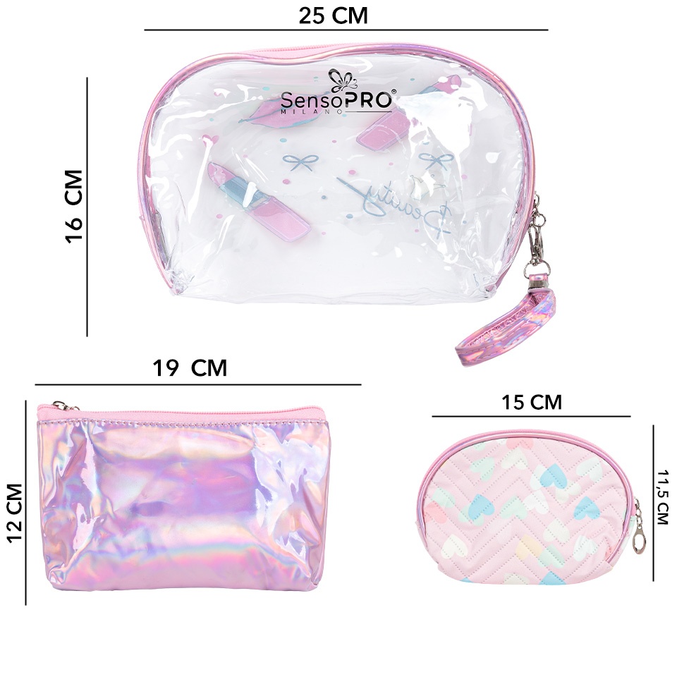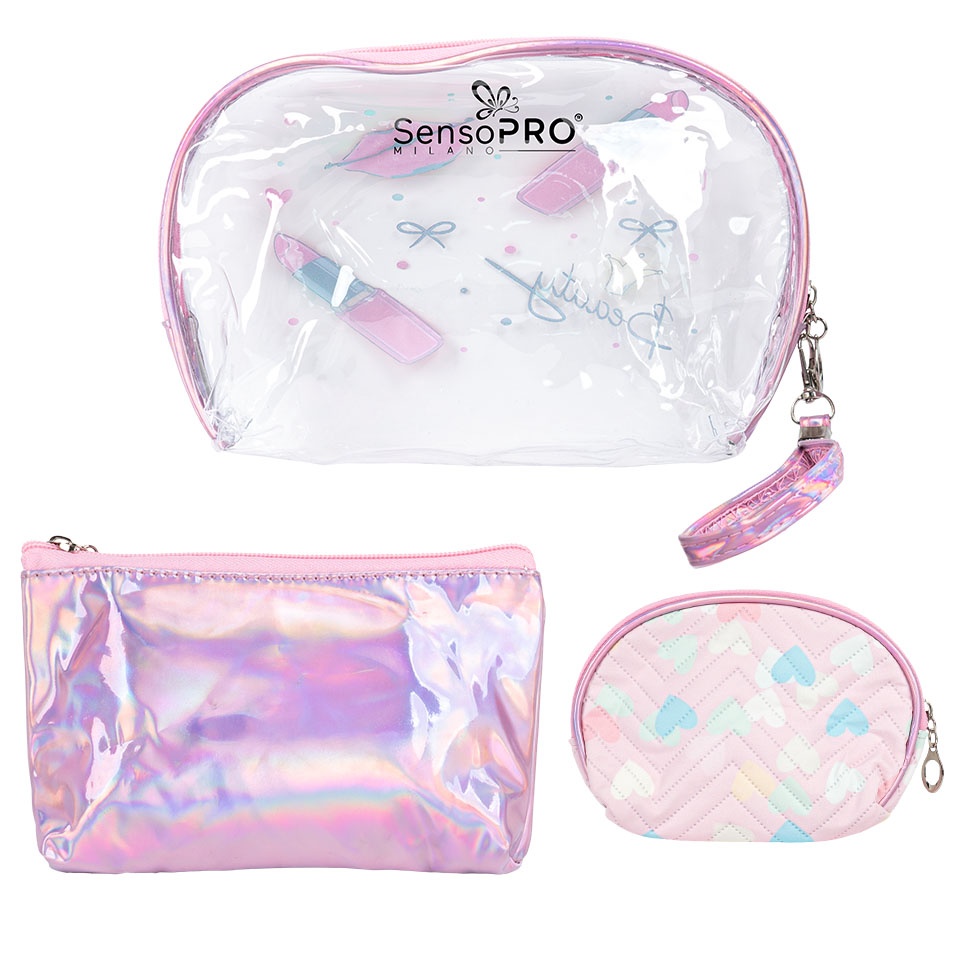 Portfard Cosmetice SensoPRO Milano - Holiday Princess, set 3 buc este perfect pentru calatorii. Portfardurile sunt un accesoriu versatil, extrem de util atat pentru vacante cat si pentru transportul si depozitarea zilnica a produselor cosmetice. Portfardurile sunt dotate cu un fermoar metalic foarte rezistent. Alege in siguranta colectia de beauty!