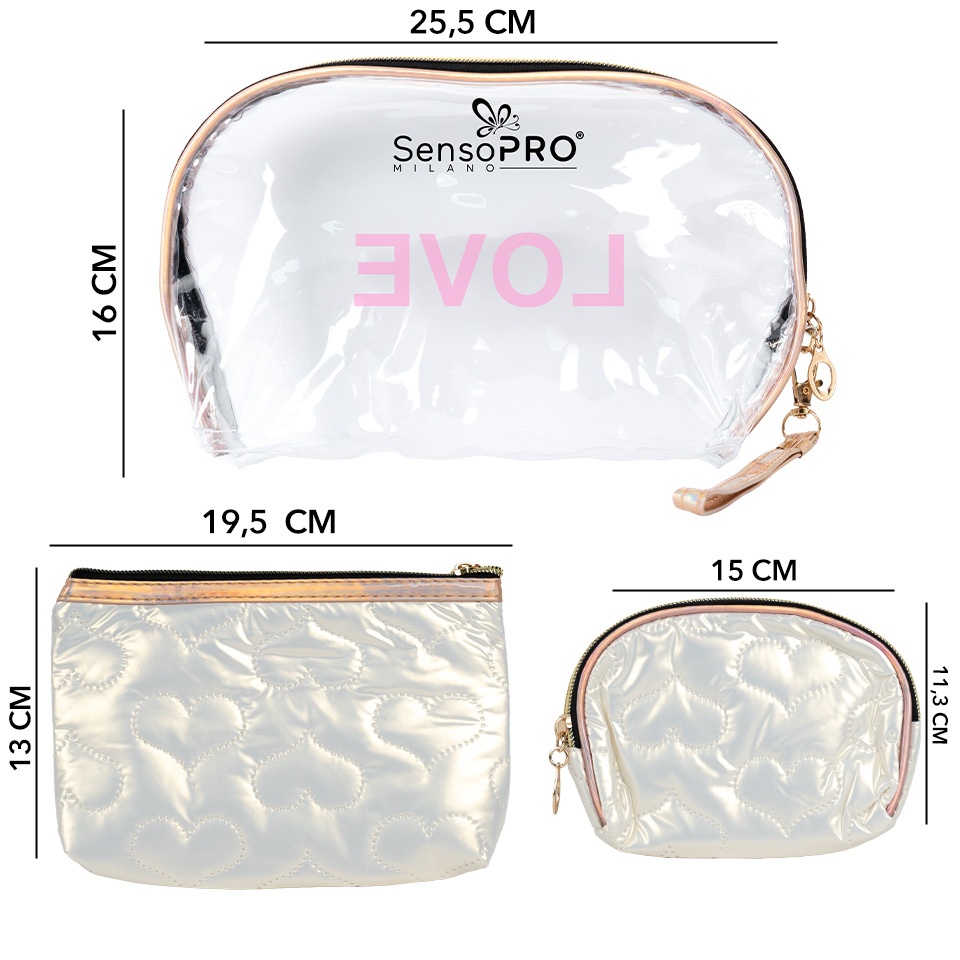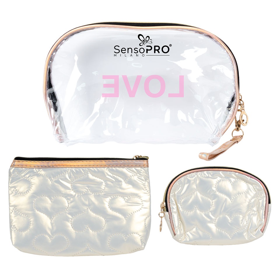 Portfard Cosmetice SensoPRO Milano - Travel Elite, set 3 buc este perfect pentru calatorii. Portfardurile sunt un accesoriu versatil, extrem de util atat pentru vacante cat si pentru transportul si depozitarea zilnica a produselor cosmetice. Portfardurile sunt dotate cu un fermoar metalic foarte rezistent. Alege in siguranta colectia de beauty!