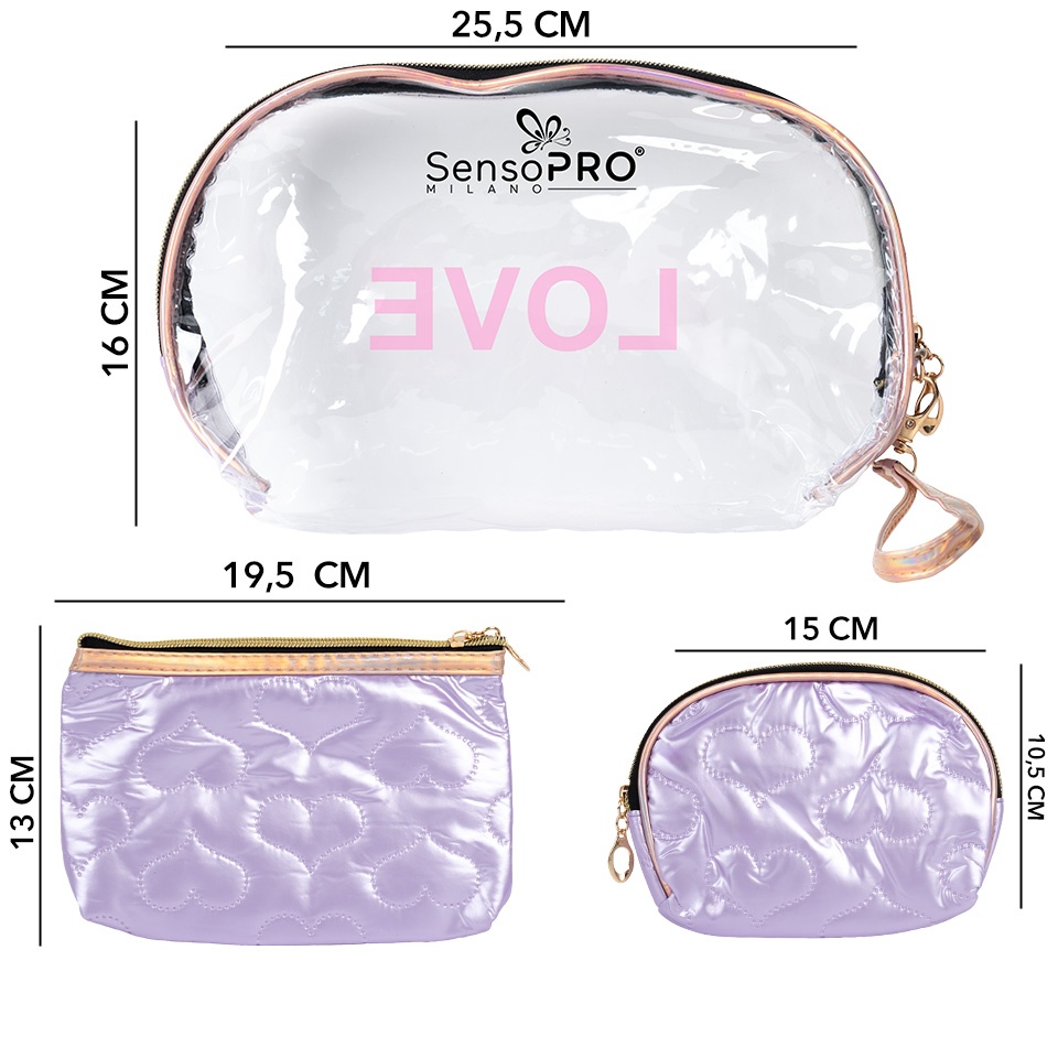 Portfard Cosmetice SensoPRO Milano - Travel Vibe, set 3 buc este perfect pentru calatorii. Portfardurile sunt un accesoriu versatil, extrem de util atat pentru vacante cat si pentru transportul si depozitarea zilnica a produselor cosmetice. Portfardurile sunt dotate cu un fermoar metalic foarte rezistent. Alege in siguranta colectia de beauty!