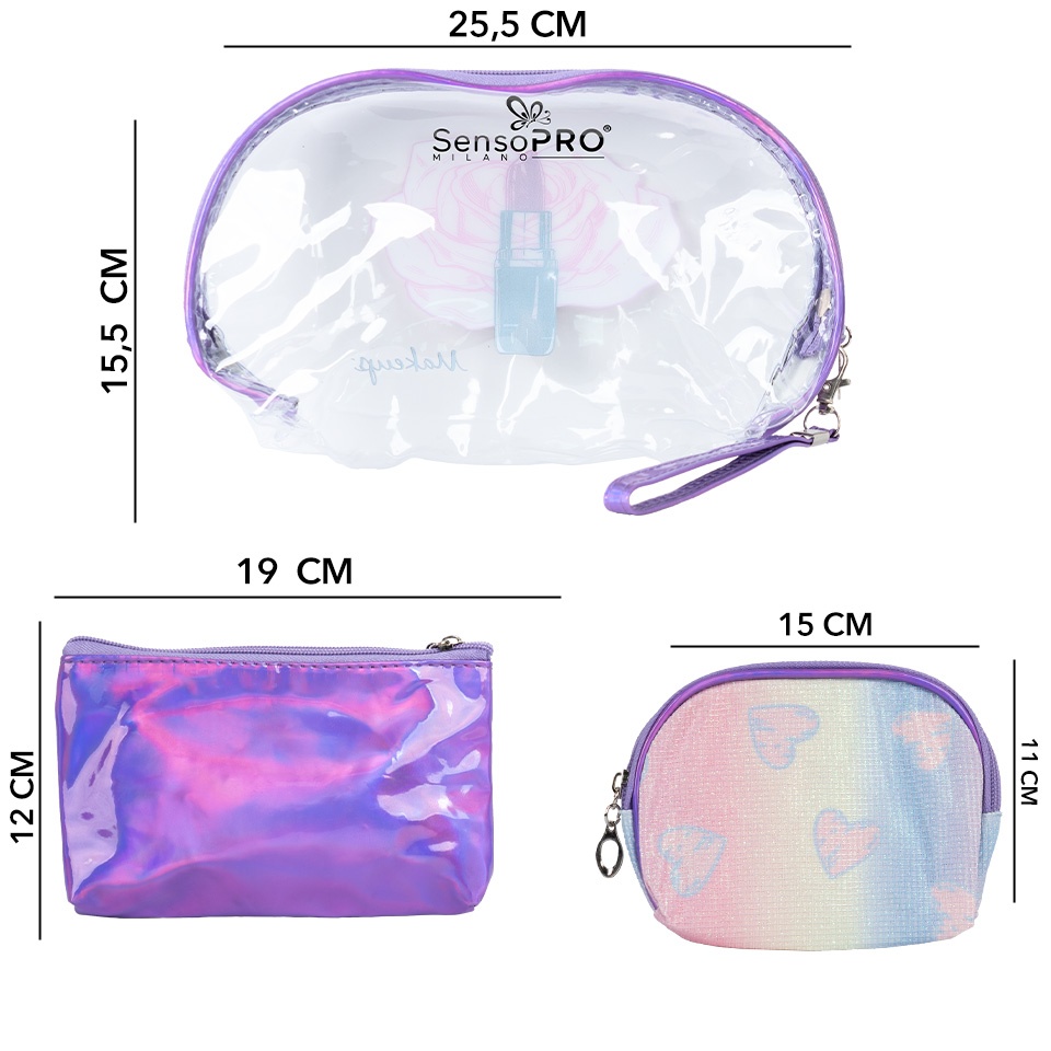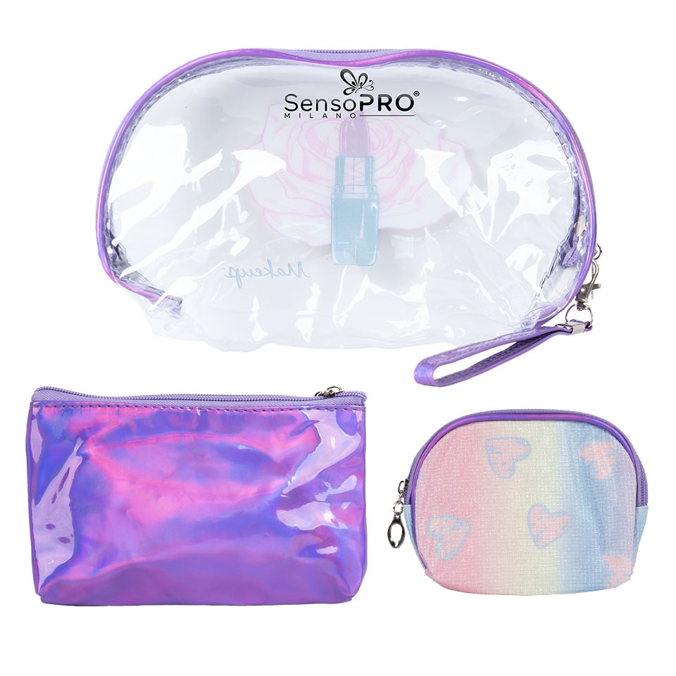 Portfard Cosmetice SensoPRO Milano - Voyage Glow, set 3 buc este perfect pentru calatorii. Portfardurile sunt un accesoriu versatil, extrem de util atat pentru vacante cat si pentru transportul si depozitarea zilnica a produselor cosmetice. Portfardurile sunt dotate cu un fermoar metalic foarte rezistent. Alege in siguranta colectia de beauty!