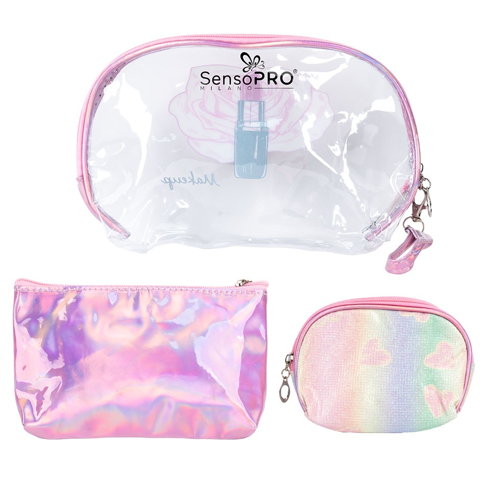 Portfard Cosmetice SensoPRO Milano - Voyage Radiance, set 3 buc este perfect pentru calatorii. Portfardurile sunt un accesoriu versatil, extrem de util atat pentru vacante cat si pentru transportul si depozitarea zilnica a produselor cosmetice. Portfardurile sunt dotate cu un fermoar metalic foarte rezistent. Alege in siguranta colectia de beauty!