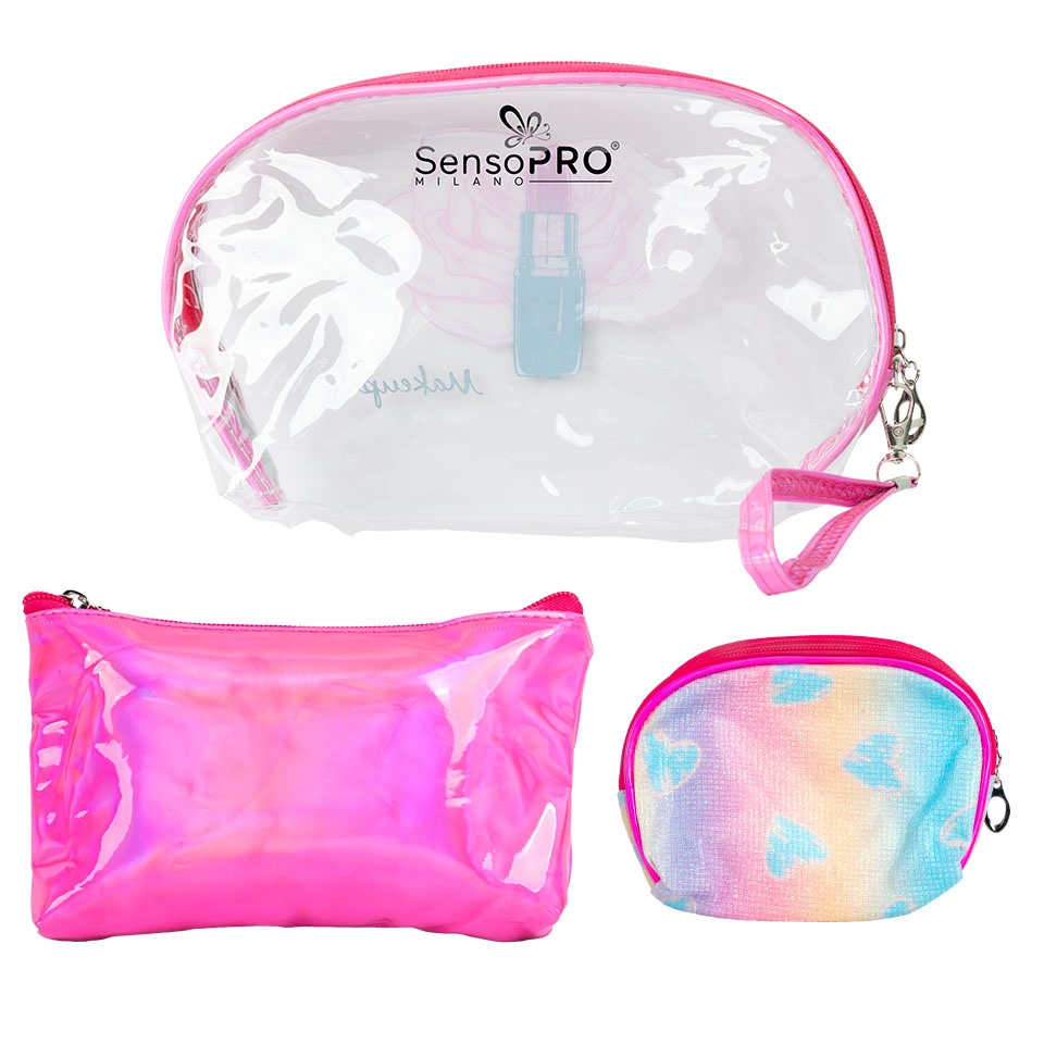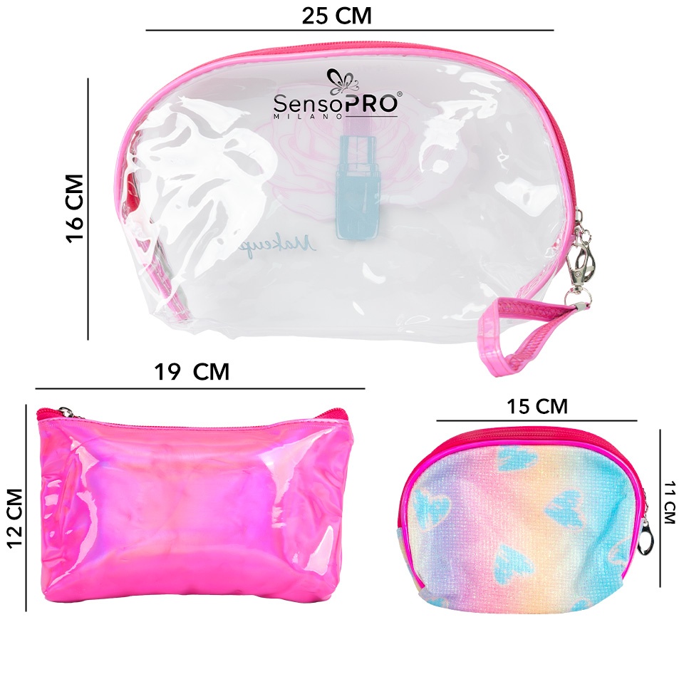 Portfard Cosmetice SensoPRO Milano - Voyage Star, set 3 buc este perfect pentru calatorii. Portfardurile sunt un accesoriu versatil, extrem de util atat pentru vacante cat si pentru transportul si depozitarea zilnica a produselor cosmetice. Portfardurile sunt dotate cu un fermoar metalic foarte rezistent. Alege in siguranta colectia de beauty!
