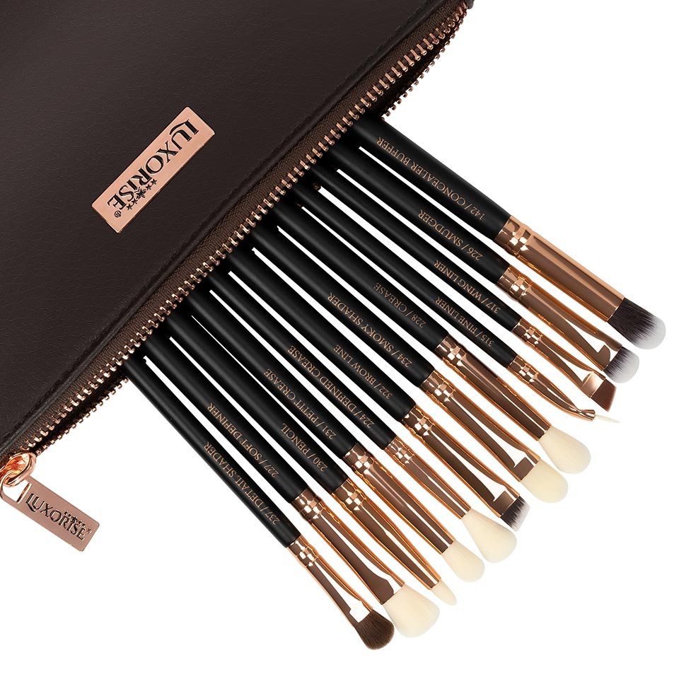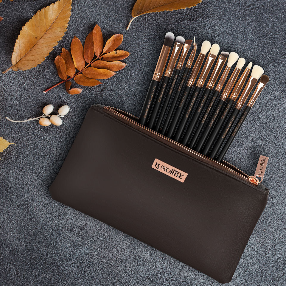 Set 12 Pensule Machiaj LUXORISE Brilliance Gold + Borseta CADOU face parte dintr-o noua colectie de pensule dedicata make-up artistilor profesionisti si celor cu adevarat pasionati de arta machiajului. Supletea perilor transforma aplicarea produselor de make-up intr-un adevarat rasfat. Cu o combinatie de par natural si sintetic, Setul 12 Pensule Machiaj iti va oferi atingeri matasoase si o aplicare impecabila a oricarui tip de produs. Ingrijite asa cum se cuvine pensulele de machiaj LUXORISE pot rezista timp indelungat. Va recomandam ca dupa fiecare folosire sa le curatati cu o solutie de curatare pensule machiaj sau cu un accesoriu curatare pensule machiaj. Setul 12 Pensule Machiaj LUXORISE Brilliance Gold contine 12 pensule ideale pentru orice tip de make-up: 315 - Pensula pentru Eyeliner 224 - Pensula pentru Fard de Pleoape 317 - Pensula pentru Codita Eyeliner 237 - Pensula pentru Fard de Pleoape 234 - Pensula pentru Fard de Pleoape 322 - Pensula pentru Sprancene 226 - Pensula pentru Blending 230 - Pensula Contur Ochi/Buze 231 - Pensula pentru Blending 228 - Pensula pentru Fard de Pleoape 227 - Pensula pentru Fard de Pleoape 142 - Pensula pentru Concealer Vor oferi eleganta si o precizie de neegalat trusei tale! In plus, veti primi si o borseta CADOU . O aditie excelenta pentru depozitare, numai buna pentru calatorii si nu numai! Comanda si tu si bucura-te de o experienta superioara a machiajului! Avantajele Colectiei de Pensule Machiaj LUXORISE: Produse de lux Materiale de calitate superioara Design elegant si confortabil CADOU Borseta eleganta Cel mai bun raport calitate-pret Pensule cu par natural si sintetic