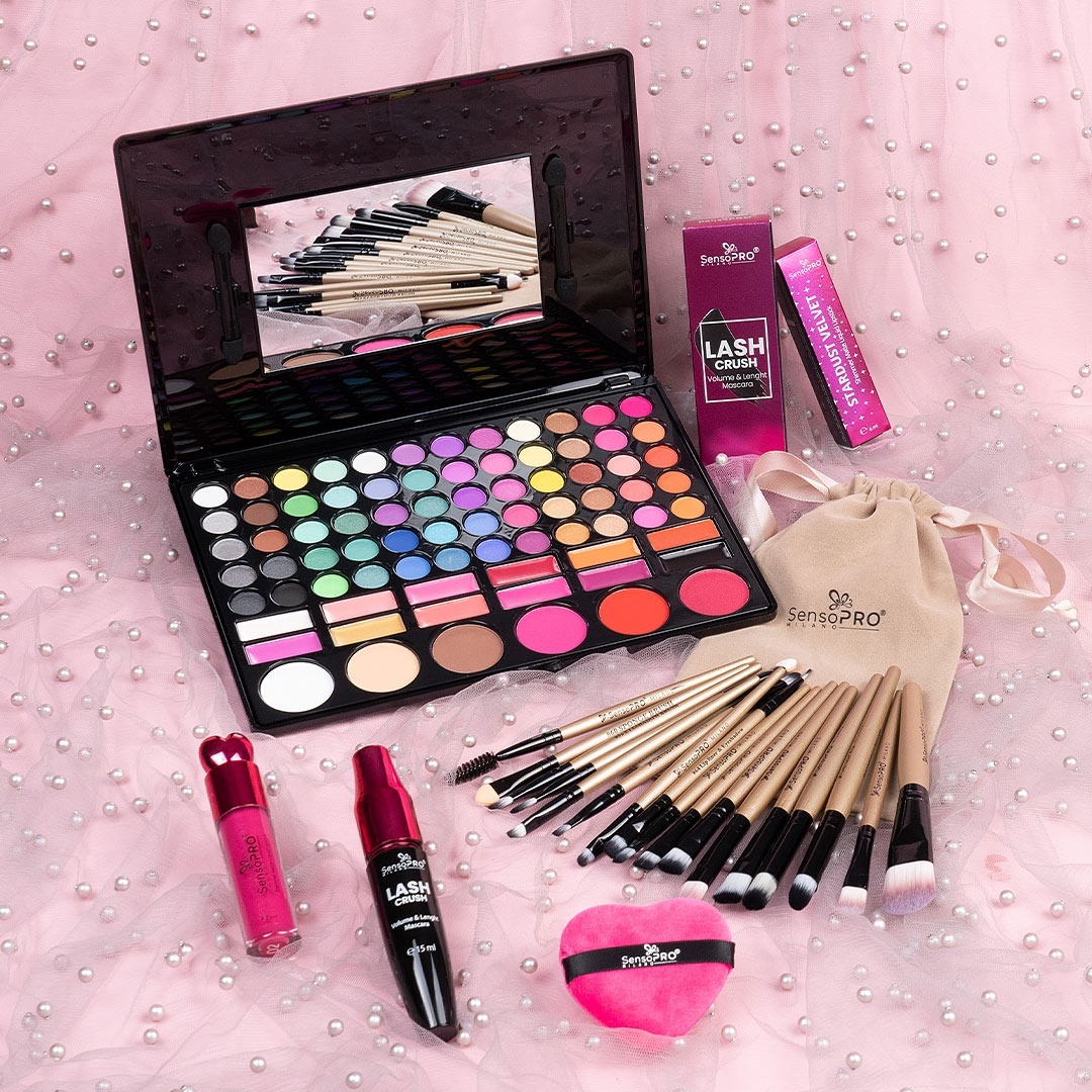 Set Machiaj Color Crush SensoPRO Milano + CADOURI dezvaluie o noua latura a feminitatii, mai dornica de explorare, de creatie si totusi la fel de fermecator de atragatoare. Fie ca iti doresti un look intens, colorat sau unul romantic si senzual, produsele cosmetice pe care le contine iti ofera orice posibilitate. Fardurile au o pigmentare ridicata, acoperire excelenta si vor face fata oricarei provocari in materie de make-up. Acest set de machiaj cuprinde: ? 1 x CADOU - Burete Machiaj SensoPRO Milano, Pink ? 1 x CADOU - Ruj Lichid Mat cu Sclipici Stardust Velvet - SensoPRO Milano (nuanta in functie de stoc) ✅ 1 x Trusa Machiaj All in One Diva SensoPRO Milano, 78 culori cu ruj si blush ✅ 1 x Set 20 Pensule Machiaj Profesionale SensoPRO Milano Travel Nude + CADOU ✅ 1 x Mascara Lash Crush Volume & Length SensoPRO Milano Set Machiaj Color Crush SensoPRO Milano + CADOURI este cadoul perfect pentru orice iubitoare de frumusete!
