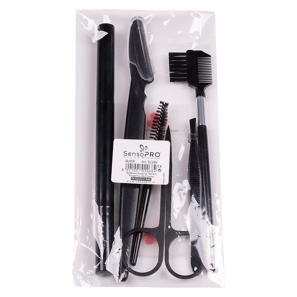 Set stilizare sprancene SensoPRO Eyebrow Shaping Tool Kit contine toate instrumentele de care ai nevoie pentru stilizarea, definirea si pensarea sprancenelor. Cu ajutorul acestei trusei complete procedura de modelare a sprancenelor devine rapida si usoara. In plus, design-ul fermecator al instrumentelor face treaba mai usoara. Set Stilizare Sprancene Perfect Eyebrow SensoPRO Milano contine : 3 x Sabloane sprancene - diverse forme pentru conturul sprancenelor 1 x Spoolie perie pentru aranjare sprancene - disciplineaza firele rebele si le piaptana in forma dorita 1 x Forfecuta - cu ajutorul ei poti ajusta dimensiunea firelor de par din sprancene 1 x Trimmer - perfect atat pentru stilizarea formei sprancenelor sau chiar indepartarea parului facial 1 x Penseta - este potrivita pentru smulgerea firelor de par nedorite din zonele sensibile 1 x Instrument dual cu pieptene si periuta - pentru aranjarea sprancenelor 1 x Creion dublu - cu un capat cremos, retractabil, unghiular, pentru definirea si umplerea sprancenelor + un capat spoolie pentru blending Alege Set stilizare sprancene SensoPRO Eyebrow Shaping Tool Kit pentru sprancene perfecte oriunde, oricand!
