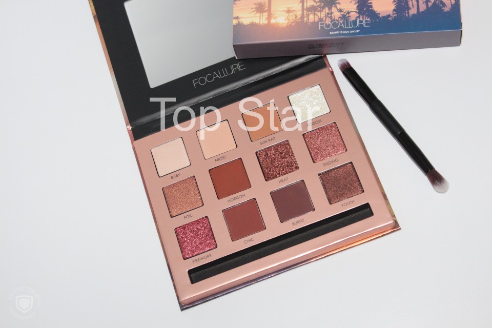Trusa 12 farduri de ochi Focallure Sunset Eyeshadow Palette Trusa contine culorile ce creeaza in fiecare zi apusul romantic de soare, imbina 12 nuante esentiale mate si sidefate ce te ajuta sa realizezi un look de exceptie. Indiferent de culoarea ochilor, nuantele selectate te vor pune in evidenta in orice moment. Nuantele mate, sidefate si metalizate se pot combina astfel incat sa obtii un machiaj fin, delicat sau unul glam. Ambalajul este elegant, practic, vesel si usor de manevrat. Pentru usurinta aplicarii, trusa de farduri de pleoape Focallure vine insotita de o pensula cu doua capete. Un capat special pentru aplicarea fixa si un capat pentru amestecarea culorilor. Fardurile de ochi in nuantele intense, pigmentate devin mai puternice daca se aplica inainte o baza de machiaj.