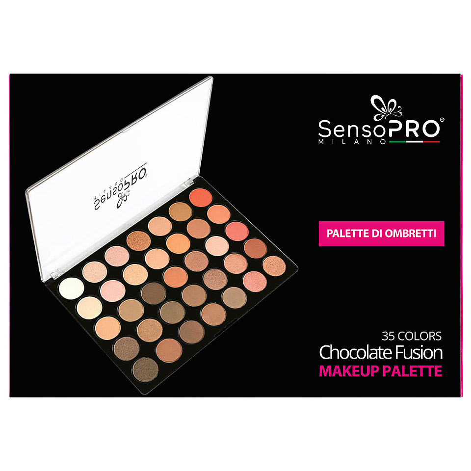 Alege desertul tau preferat – Trusa Farduri Chocolate Fusion SensoPRO Milano, 35 culori! Chocolate Fusion impresioneaza prin nuante discrete, delicate, cu texturi catifelate! Ingredientele sunt de calitate premium, usor de blenduit, cu aplicare placuta pe pleoape. Paleta contine o selectie bogata de nuante calde, tonuri de maro, ciocolatiu si bronz , completate de accente aramii si pamantii. Predomina fardurile mate , ideale pentru definire si machiaje naturale, insa gasesti si nuante satinate care adauga luminozitate si profunzime. Este o paleta extrem de versatila – poti realiza machiaje subtile de zi , dar si look-uri intense si enigmatice de seara: bronzy look, smokey eyes sau glam sofisticat . Valabilitate: 12 luni de la deschidere.