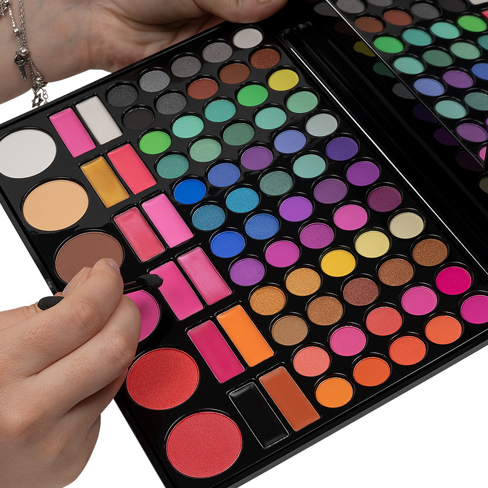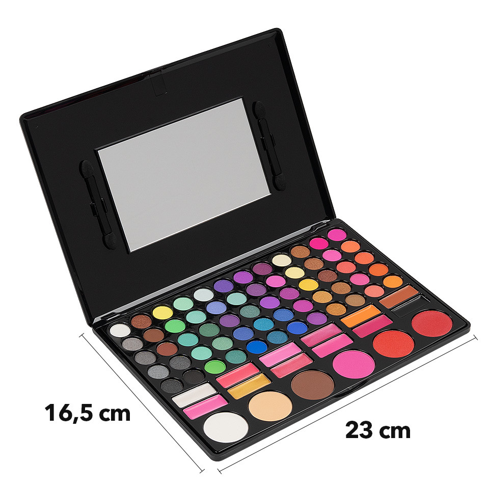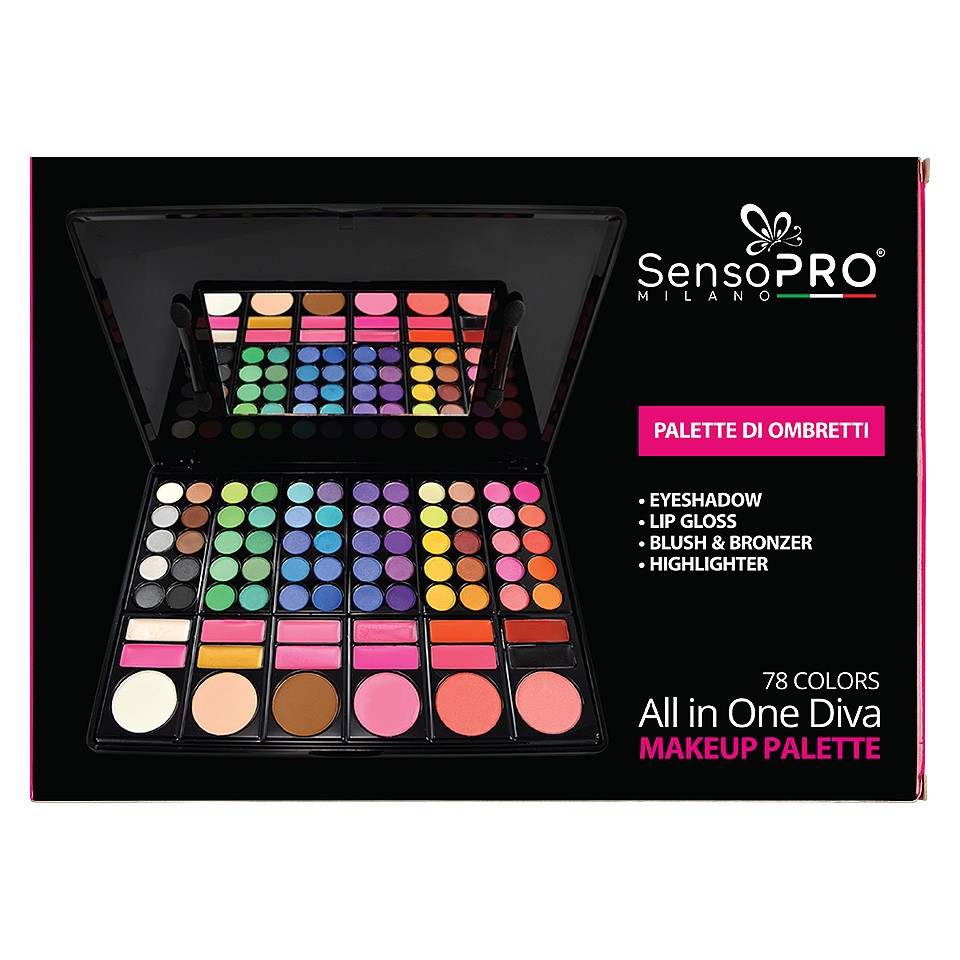 Trusa Machiaj All in One Diva SensoPRO Milano, 78 culori cu ruj si blush ce incorporeaza toate elementele necesare realizarii unui look complet, ce-ti va da stralucirea zilnica. Un look indraznet va fi mereu admirat de cei din jurul tau. Componenta trusei este urmatoarea: - 60 de nuante de farduri mate si sidefate in proportii egale, cu nuanţe ce variaza de la tonuri deschise (roz, verde, mov, abastru) sau mai inchise (gri, negru, maro). Au textura lejera si nu se strang pe pleoape. - 12 nuante pigmentate de ruj - 1 nuanta de pudra de fata - 1 nuanta de pudra iluminatoare - 3 nuante de blush - 1 nuanta de pudra de contur Produsele au la baza ingrediente naturale, de calitate, cu textura, miros si culoare placuta. Paleta iti ofera cel mai bun fard de obraz, impreuna cu celelalte formule unice, ce-ti vor transforma machiajul obisnuit intr-o arta. Vedeta printre produse este si rujul roz in diferite tonuri, ce-ti va oferi un plus de prospetime si de volum buzelor tale. Ai posibilitatea sa alegi din mai multe nuante, astfel incat sa descoperi formula care se potriveste tipului tau de ten. Design-ul elegant al casetei de prezentare este completat de o oglinda încorporata si doua aplicatoare duble cu burete! Dimensiune trusa: 23 x 16.5cm Valabilitate: 12 luni de la deschidere