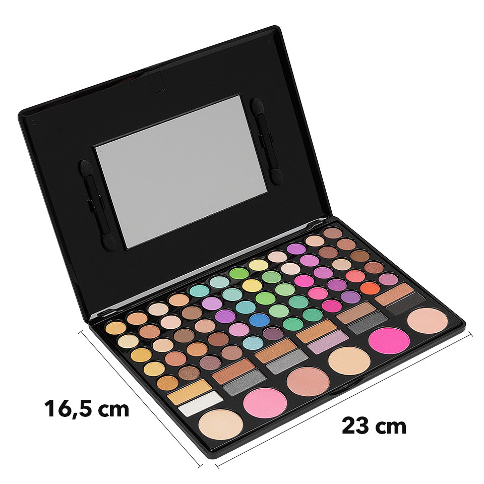 Trusa Machiaj Amazing Sweet SensoPRO Milano, 78 culori cu blush va fi sursa ta de inspiratie la orice eveniment te vei afla. Este o gama completa ce te ajuta sa descoperi tehnici noi si eficiente. Trusa este compusa din: - 72 de culori de nuante de fard de ochi, neutre, cu ingrediente de cea mai inalta calitate, care nu se sterg de pe peloape si nu se strang la baza pliului - 3 nuante de blush cu reflexii roz, foarte delicate cu pielea - 3 nuante de pudra pentru fata, ce-ti vor contura discret trasaturile chipului Fie ca este vorba despre iluminator, bronzer sau fard de obraz, toate au un rol important in machiajul fetei. Trusa iti ofera toate variantele de a straluci. Micile imperfectiuni vor fi ascunse, iar pometii tai vor fi conturati si stralucitori. Particulele fine de blush iti vor face tenul sa arate proaspat si sanatos. Bucura-te de o trusa multifunctionala ce iti ofera si o gama diversificata de farduri de ochi. Textura este ideala pentru a imbina armonios culorile. Ingredientele folosite asigura rezistenta machiajului, dar si intensitatea, datorita pigmentilor. Design-ul elegant al casetei de prezentare este completat de oglinda încorporata si doua aplicatoare duble cu burete. Alege Trusa Machiaj Amazing Sweet SensoPRO Milano, 78 culori cu blush! Dimensiune trusa: 23 x16.5 cm Valabilitate: 12 luni de la deschidere