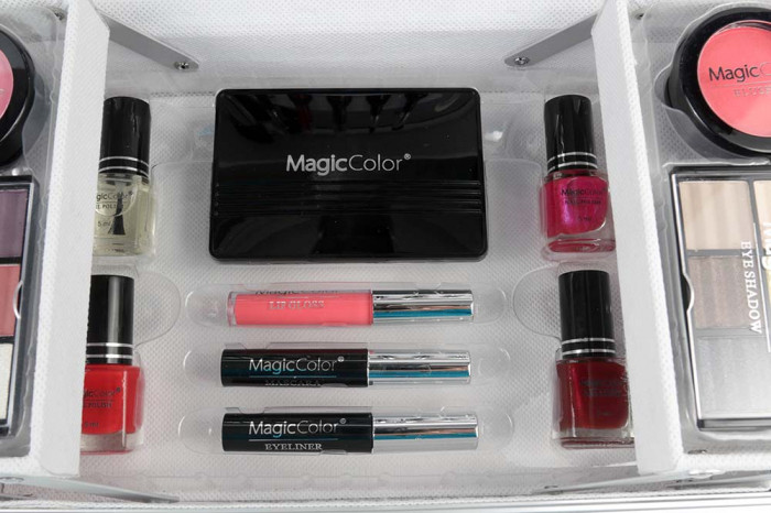 Trusa Machiaj + Geanta depozitare cosmetice Magic Color Makeup Kit New Collection Trusa contine: - 24 farduri de ochi - 2 farduri de obraz - 4 Lacuri de unghii - 1 tus de ochi - 1 mascara - 3 ruj de buze cremos - 2 creioane de buze - 2 aplicatoare fard - 1 pensula de sprancene - 1 pensula de buze - 2 pensule fard de obraz - geanta depozitare