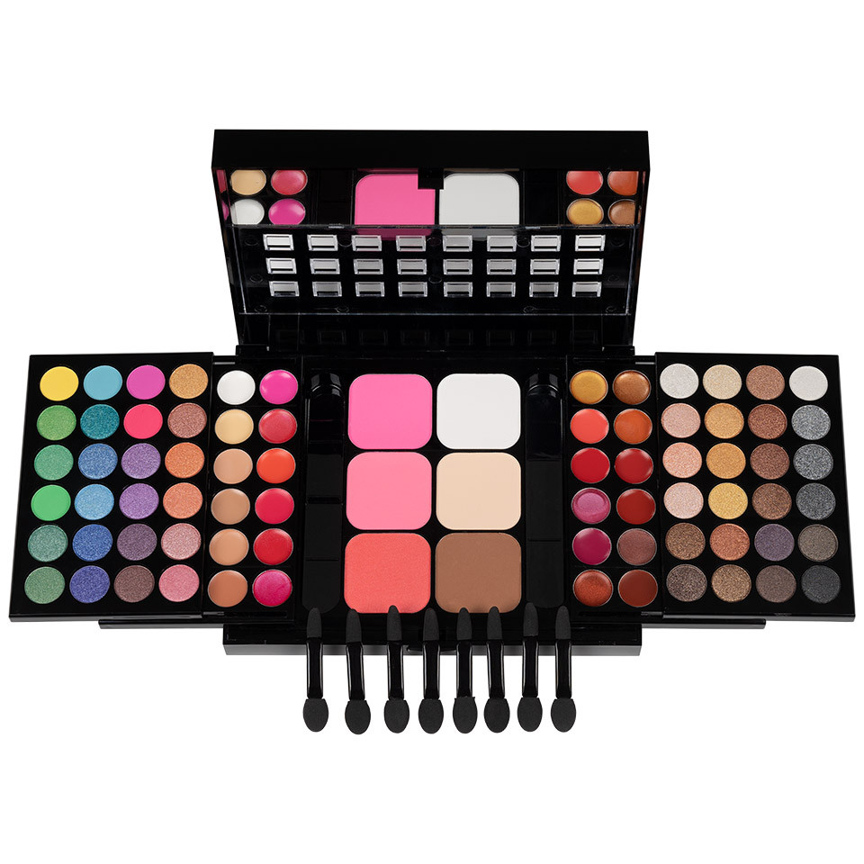 Cumpara si tu cea mai buna trusa de machiaj profesional SensoPRO Milano , in 78 de culori, ce concentreaza toate elementele de care ai nevoie in realizarea unui machiaj perfect. Trusa Machiaj Profesionala are urmatoarea componenta: 48 de nuante de farduri mate şi sidefate 18 nuante de ruj 8 aplicatoare duble pentru fard de pleoape 6 nuante de concealer 3 nuanţe diferite de blush si 2 pudre + 1 bronzer oglinda cosmetica Secretul ochilor superbi iti va fi dezvaluit de pigmentii ultra-rezistenti din compozitia fardurilor de pleoape, cu variatii de la tonuri deschise la inchise, ce te vor inspira sa creezi armonii cromatice unice, o lume noua de explorat. Permite o acoperire imediata si uniforma pentru a avea un rezultat pofesional. Culorile cu o pigmentare intensa si textura ultra lejera te ajuta sa obtii machiaje potrivite oricarui eveniment. Pudra de obraz se intinde lejer pe piele pentru a obtine un aspect sanatos si de lunga durata. Trusa Machiaj Profesionala contine farduri cu o textura fina ce se ajusteaza dupa cum doresti, fara a incarca pometii. Culorile cu o pigmentare intensa si textura ultra lejera te ajuta sa obtii machiaje potrivite oricarui eveniment. Paleta de rujuri te va ajuta sa descoperi cel mai bun gloss de buze, ce-ti va hidrata si augmenta buzele. Cutia de prezentare are un design elegant si compact, cu doua palete mobile pe partile laterale, un detaliu practic ce o face usor de transportat, chiar si in calatorii. Magazinul nostru de produse cosmetice iti pune la dispozitie o selectie valoroasa de truse de machiaj profesionale ce-ti vor fi alaturi in orice situatie! Dimensiuni trusa inchisa: 16.8cm x 13.5cm x 3.3cm. Dimensiuni trusa deschisa: 33.5cm x 11.7cm. Valabilitate: 12 luni de la deschidere